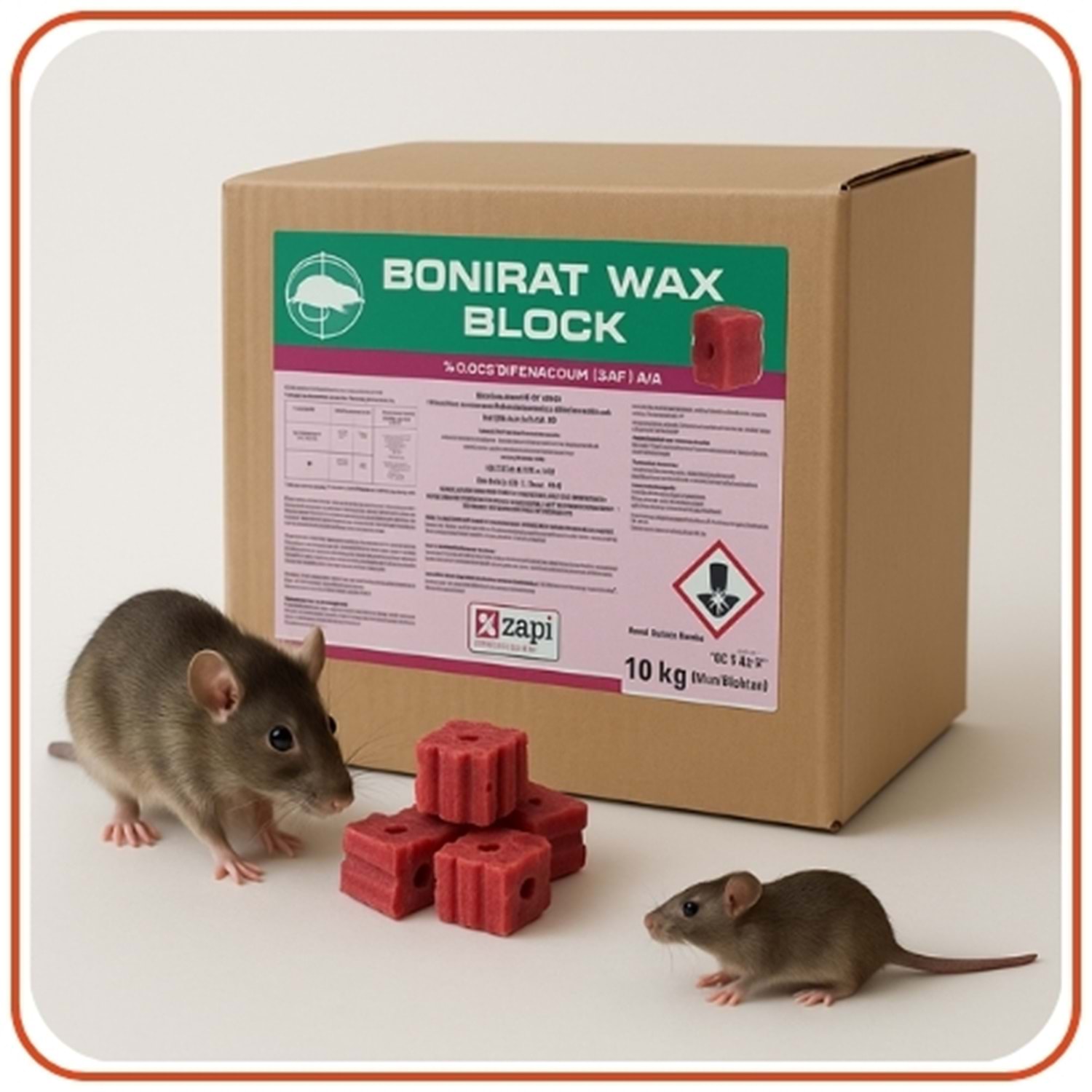 Bonirat Mum Blok, lağım faresi, sıçan ve tarla faresi popülasyonlarının kontrolünde uzun süre dayanıklı ve çevre koşullarına dirençli yapısıyla öne çıkar. 10 gramlık ortası delikli küp yemler, fare yem istasyonlarında kolay sabitlenir ve suya, neme, yüksek sıcaklığa karşı dayanıklılık sunar.